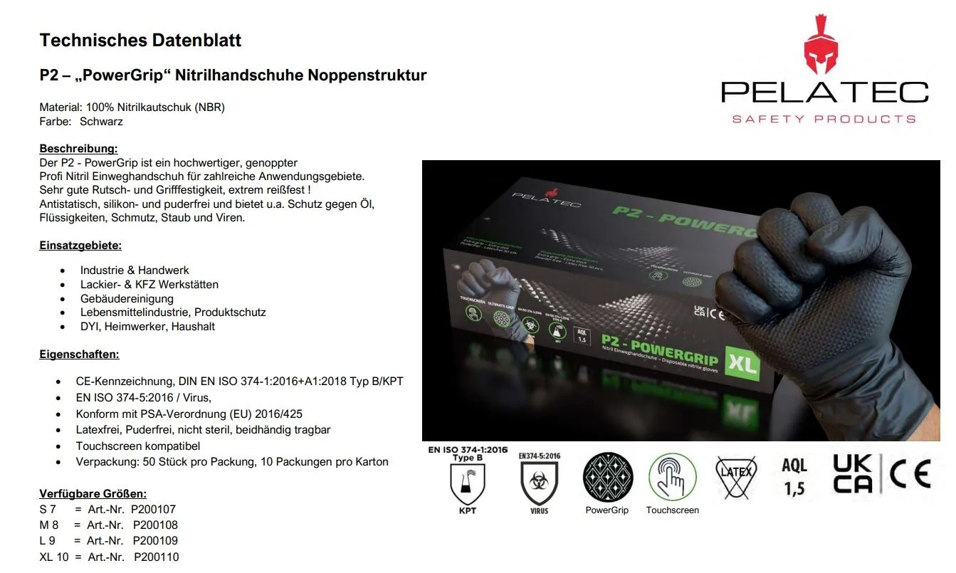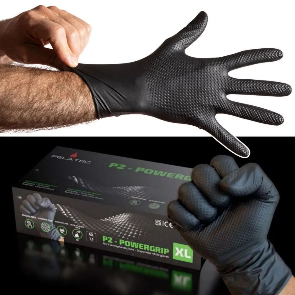 Pelatec P2 Power Grip - Nitril Einweghandschuhe Gr. M (7-8)